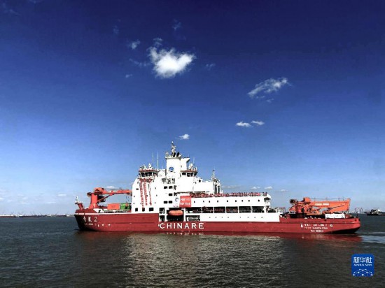 2020年11月10日,中國第37次南極科學(xué)考察隊(duì)乘坐“雪龍2”號極地科考破冰船從上海起航,奔赴南極執(zhí)行科學(xué)考察任務(wù),這是“雪龍2”號極地科考破冰船駛離碼頭。新華社發(fā)(中國極地研究中心供圖)